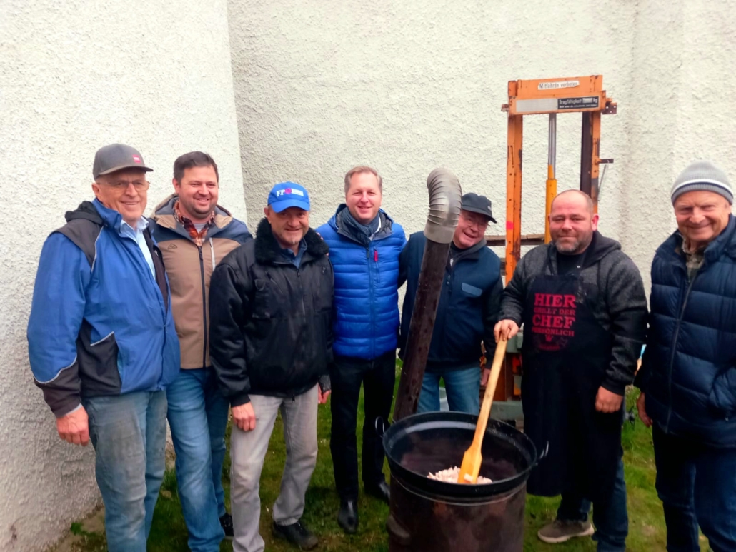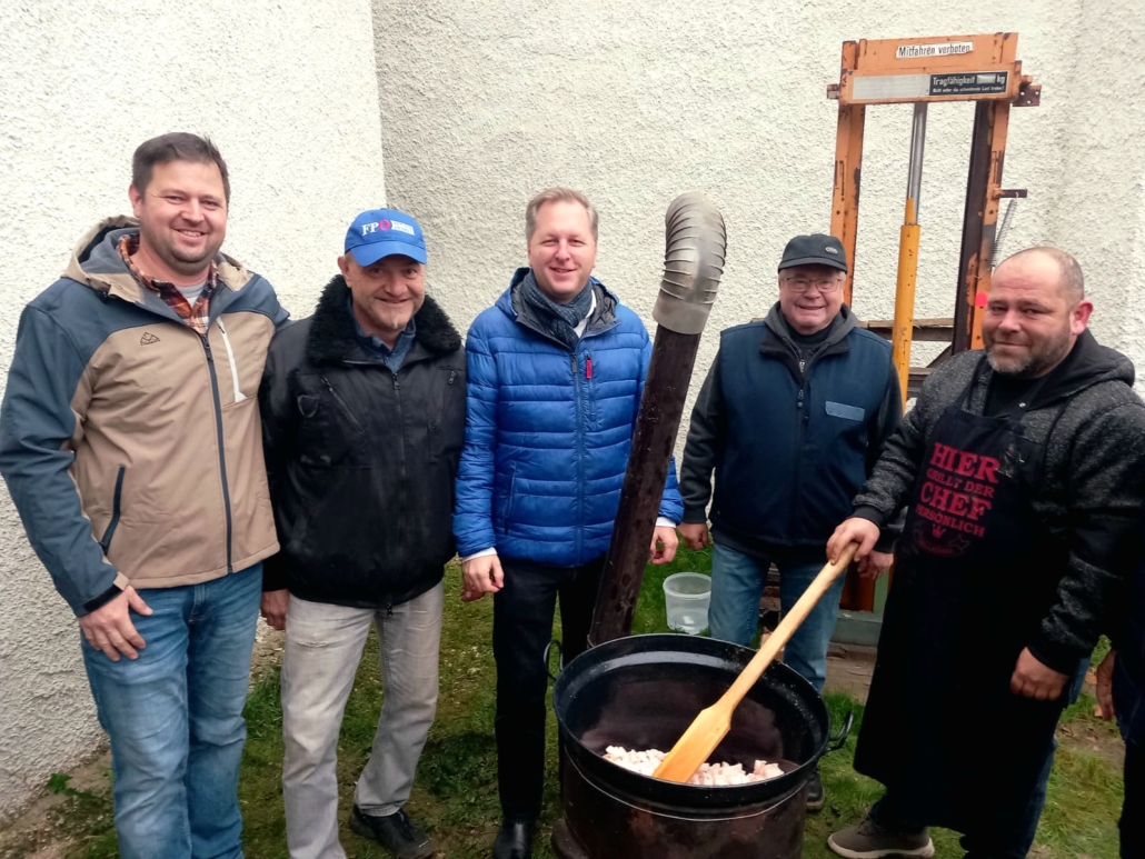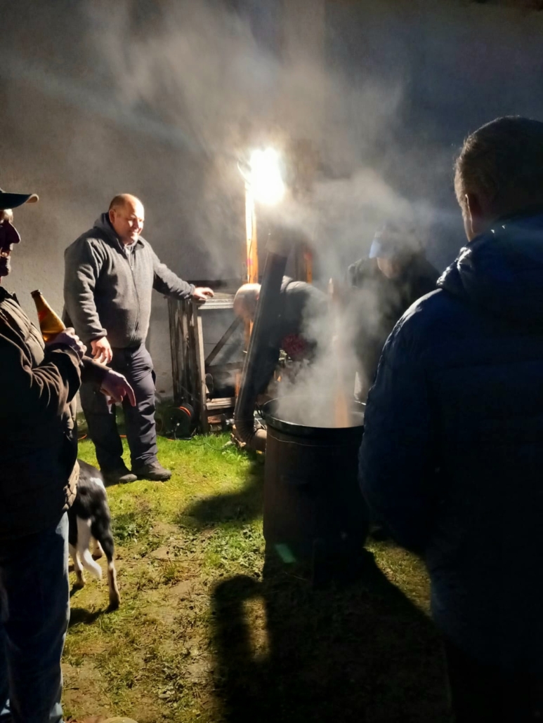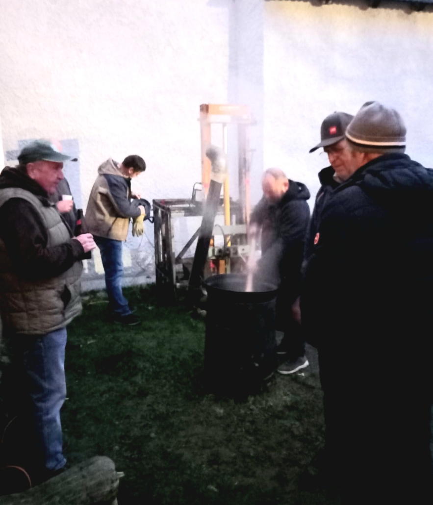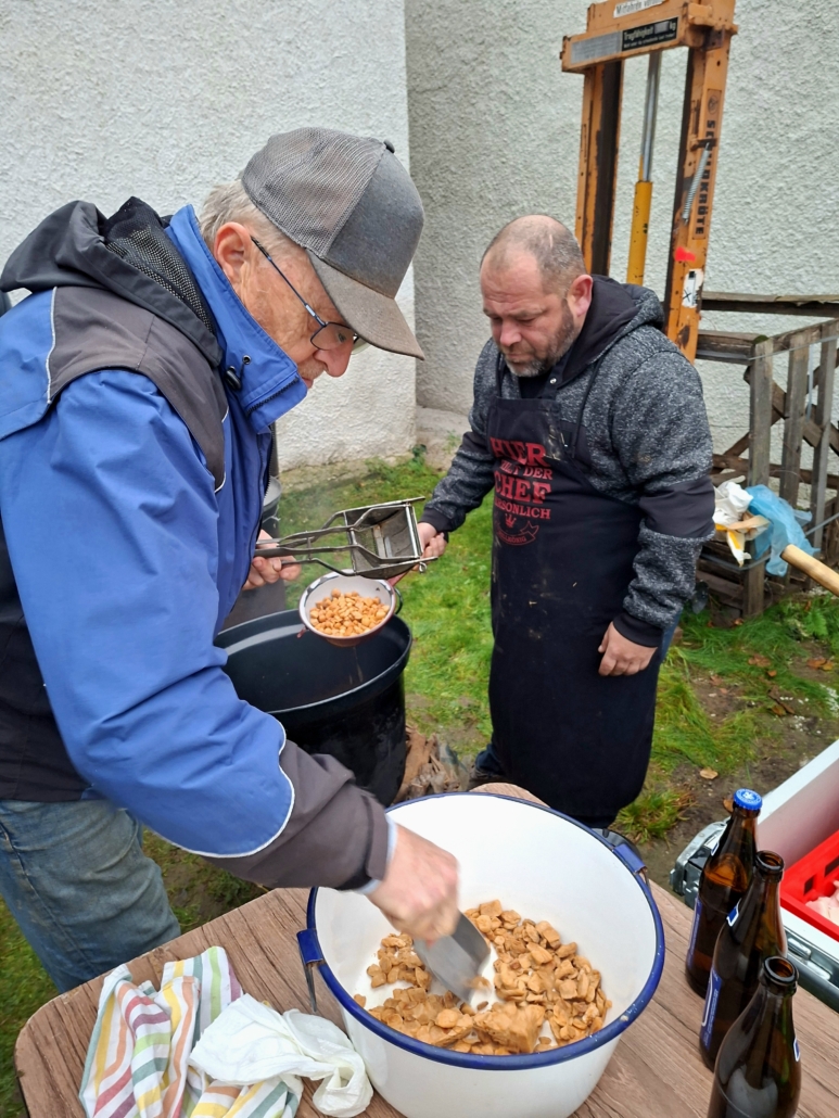20251115 Gemeinsames Arbeiten am großen Kessel mit frischen Grammeln in Halbturn.