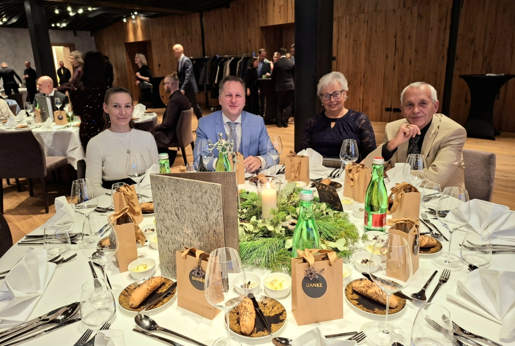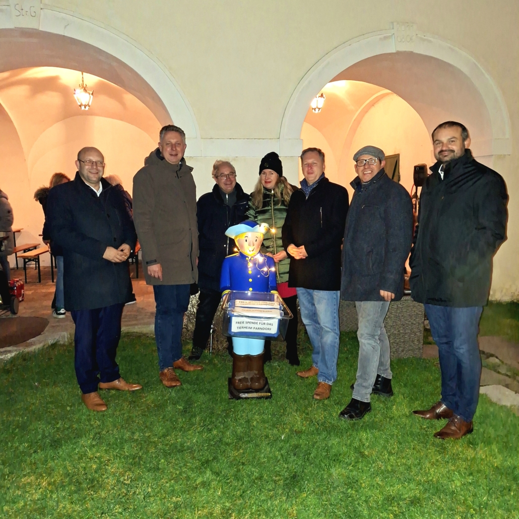 20251128 v.l.n.r. LAbg. Sandro Waldmann, LPO NR Alexander Petschnig, Gerald Strass, Katharina Strass, LAbg. BezPO Mario Jaksch, Bgm. Johannes Hornek, LAbg. Markus Wiesler