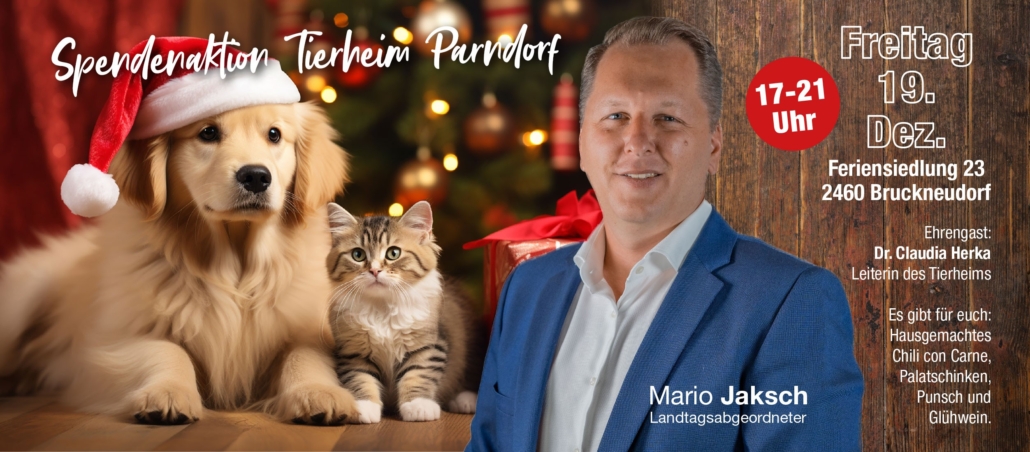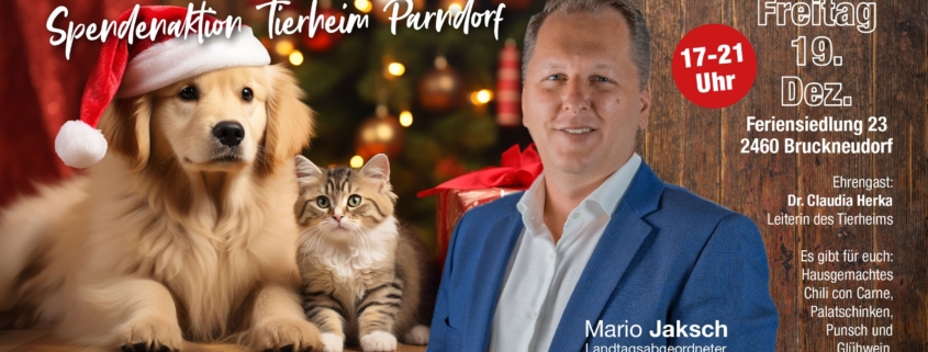 Am Freitag, dem 19. Dezember 2025, laden wir herzlich zu unserer Spendenaktion für das Tierheim-Parndorf ein.